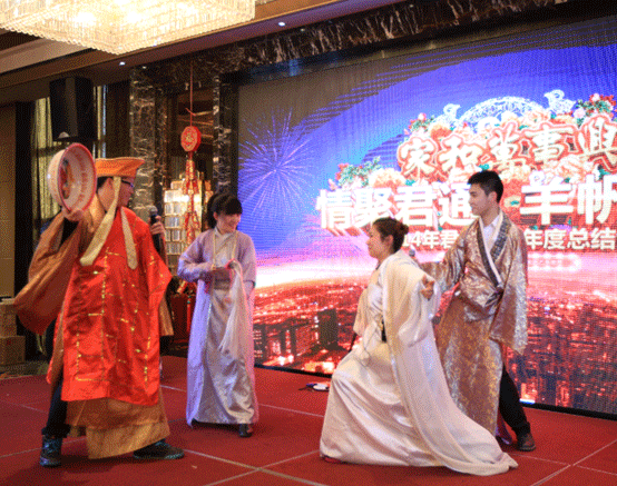 刚说到康少全能,殊不知苏州君通的小伙伴们也是个个能歌善舞、就连小品也是创意非凡引起全场沸腾,很花心思去创作的《包子战群雄》小品献给大家: |