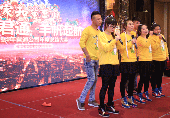 在万众期待与瞩目中,君通2015年度年会盛典于2015年2月11日早9:00正式开幕,伴随着气势恢宏的新年贺岁音乐与《情聚君通*羊帆起航》的绚烂LED电子背景、主持人阿杜徐步走上台,让每位君通人都抖擞了精神准备好聆听一场非常令人振奋、鼓舞士气的文化盛宴,看着一位位领导人的激昂的发言与来年展望,让每位君通人的每个细胞都张开了、吸收着丰富的精神食粮,暗暗下自了:2015年必将在君通大干一场、发光发热的决心!此刻,我想说“文化食粮是人类进步的阶梯”绝对是先辈们经过无数实践得出的真理!赞一个! 首先登台发言的是我们的掌舵人——君通集团的董事长:尹可珍女士,气场之大让我们每个君通人都被hold住了,尹董的ppt全程都有《相亲相爱一家人》做背景音乐、以《2014感恩有你》为主题不禁让小伙伴们感动得潸然泪下,大家长真诚的发言感动全场,让我们有幸选择了网络行业,有幸选择了君通,更幸运的是我们有尹董这位大家长!尹董凭借她多年在互联网行业叱咤风云的经验从互联网发展大事记讲到我们君通的大事记:君通以一面崭新的旗帜进军苏州市场,君通广告宣传语征集圆满收官,君通互联让品牌与商机无限延伸公司司庆征文活动等等都历历在目,都是让我难以忘怀的回忆,更让我们振奋的是我们尹董讲到2015年的展望,讲到我们君通2015年发展新增长点,让大家都竖起耳朵听得热血沸腾,没错,我们就是:多元化产品的IT公司!口碑出众的IT创新型公司!核心研发团队的技术型公司!为员工搭建多元化的发展平台的公司!为客户提供具有竞争力的产品和优质服务的公司!来年我们肯定会为君通的发展贡献出自我的一份力量! |