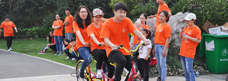 下午我们来到了桃花岛进行了3人2人骑自行车比赛,比慢!我作为有为青年和全能冠军当然所有项目都报名了。首先比的是三人自行车比赛,其中一组已绝对优势拿下冠军,随后开始的2人自行车比赛,随着时间的推移状况越来越激烈,其中三人组的冠军已绝对的优势,当大家以为他们的分数已经绝对的冠军,当大家认为无法超越的时候。尹总对谈经理说了一句话:你去试试,拼一下才知道,你行的。最后谈经理以微小的分差赢了取得了冠军。因为他拼搏了。晚上我们进行了晚宴很多老一辈的都上去唱了歌,其中的最让我的难忘的还是尹总的一见你就笑,开心快乐,康总的红日代表的希望。晚宴结束后自由活动打牌的打牌玩的玩好久没这么开心过了。