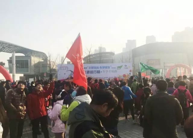 1月16日周六上午在无锡大剧院举行的由无锡市体育局、无锡市总工会、无锡市妇女联合会主办的“文明风尚、科学健身”——冬季趣味跑活动正式拉开帷幕,近万人的参加让此次活动的场面显得非常的壮大,咱们君通的代表团也早早的来到大剧院门前集合完毕了。大家高举着飞扬的旗帜,胸前和手臂上贴着“文明与健康同行”的标志,体现了满满的运动正能量。