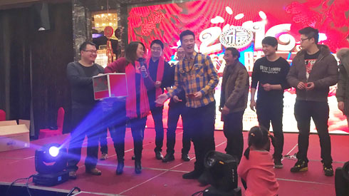 我们在酒桌上聊着天,给舞台上的表演者拍拍照片,看着精彩的演出,吃着水果,一股过年的氛围。随着压轴好戏抽奖活动的登场将年会气氛推向了高潮,现场的抽奖则引爆了全场人员的热情。去年抽到一等奖,今年也盼着能抽到大奖,可是机会不等人,大奖落到彭郁家,不过没抽到的也不灰心,现场有加奖继续抽,我们桌上10个人中了6个,抽到现金奖的都发红包,红包也抢了不少呢!