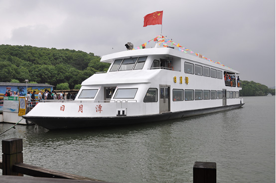 排队没多久我们就上了游船,站在游船的甲板上,看着天目湖的景色,真是如诗如画,百闻不如一见!