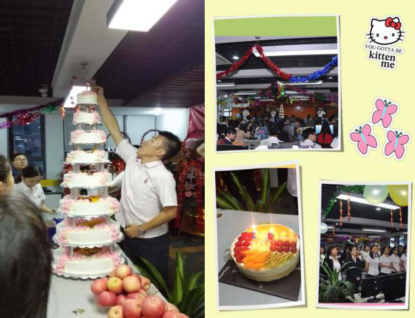 最最让人难以忘怀的还是晚会环节,处处充满了温馨和感动。气球,彩带,鲜花,横幅,在伙伴们的精心布置下把整个办公室装扮的熠熠生辉,水果,蛋糕,糖果的加入更是唱响了生日晚会的主旋律,一切都恰到好处!