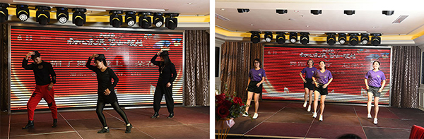 本次年会除了传统的歌舞小平表演外,还新增了不少特色节目表。梁山小分队的相声《好嗨哟》,而他们团队带来的另一个手语舞《我的好兄弟》歌声激情澎湃,手指舞真挚感人,当唱到“朋友的情谊呀比天还高比地还辽阔,那些岁月我们一定会记得;朋友的情谊呀我们今生最大的难得,像一杯酒 像一首老歌”时,全场跟唱,台上台下相呼应,真挚的情感透过歌声传达了“君通人就是相亲相爱的一家人”的理念。