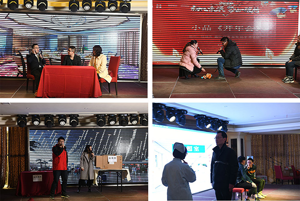 技术部的同事们全员出动先后给大家送上小品《同学聚会》、《开年会》和《安检》,轻松幽默的表演令人忍俊不禁。而大咖云集的豪华创作阵容小品《B超风云》把晚会推向了一个的高潮,现场欢呼不断,掌声不断。