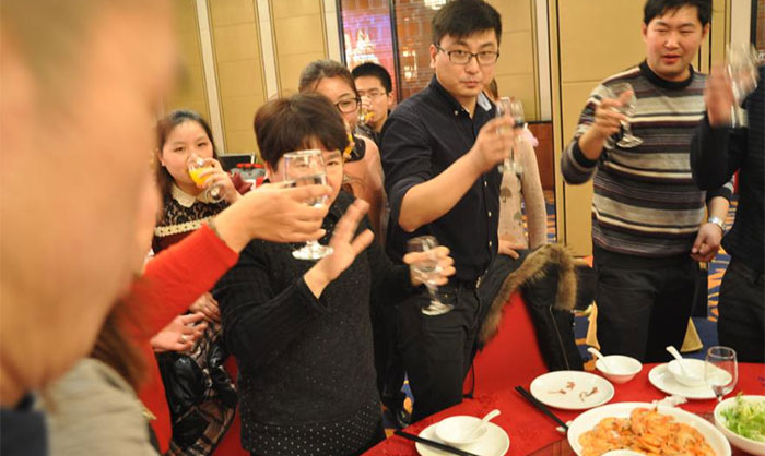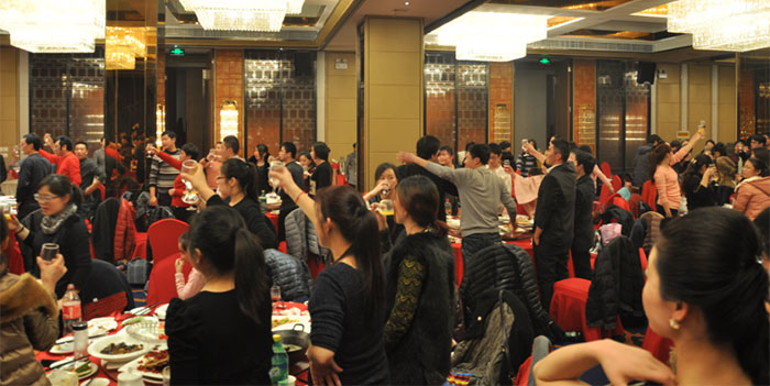 晚宴开始了,想吃的,在桌子上,想喝的,红的,白的,黄的,饮料,应有尽有;交杯换盏、觥筹交错,其乐融融;每人一个红包不说,还有几轮的抽奖,得奖的高兴,没有得奖的也跟着高兴,对,所有人都高兴着。