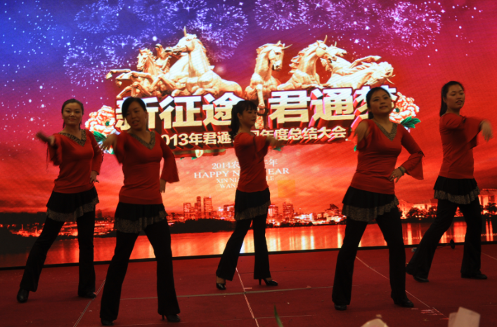 然后是本届会议的岁末压轴大戏——《君通春节联欢晚会》,伴随着4位着装靓丽的春晚主持人的脚步跟各位来宾的尖叫声,我们迎来了君通本届“视觉盛宴”的开幕,首先是我们可敬可爱的尹总为大家致春晚开幕词,尹总激情的一席话语让在座的每一位都按捺不住心中的火花,尽情展现自我的时刻到了!