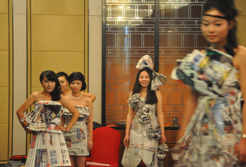 下面登台的可是今晚最佳创意风尚奖是由行政部、软件部带来的服装show《花的衣裳》,仔细看看、我们的show很节能环保哦。。。。。。