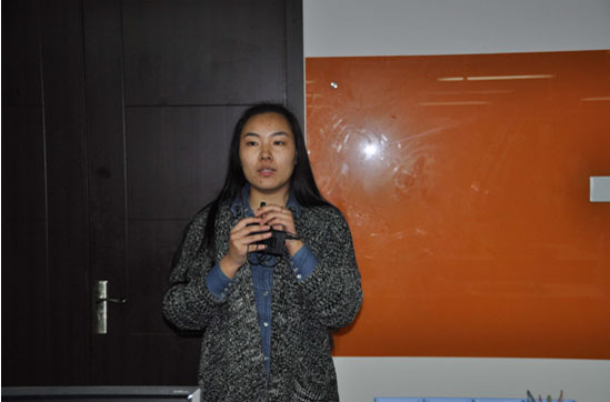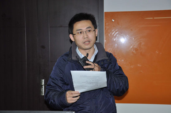 设计部顾大师"君通互联商机与品牌无线延伸"最终夺得2014君通科技“对外宣传广告语”最佳作品奖,图为顾大师做寓意解说