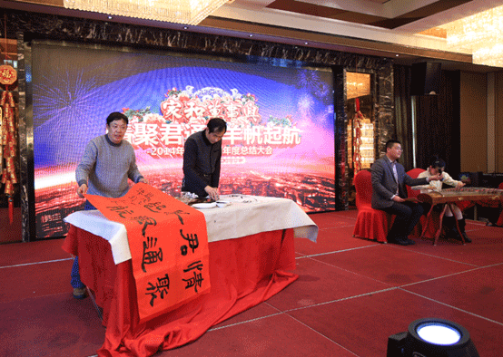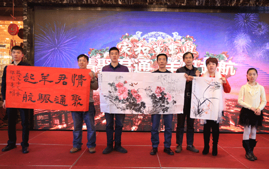 听说君通年庆,尹总的好朋友无锡市书法协会的重量级会员前来道贺,现场作画题字:首先是一副意境深远的《君子兰》,让我不禁想到这不是在比喻我们尹总的君子兰风格魅力吗?还有一副《牡丹花》送给尹总,象征着圆满、富贵、吉祥、幸福、雍容华贵,还有书法大师们的书法墨宝也很了得,那字写得真是让我们大开眼界,期间特邀小嘉宾谈静奕古筝独奏《茉莉芬芳》,琴棋书画都在君通春晚现场,实在是妙不可言,在场的亲们好福气: |