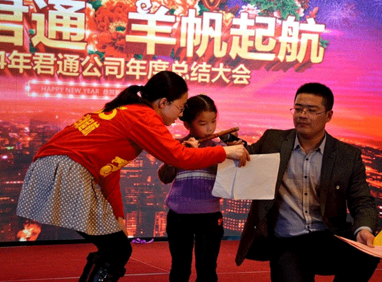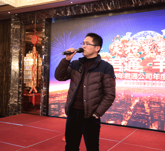 在万众期待与瞩目中,君通2015年度年会盛典于2015年2月11日早9:00正式开幕,伴随着气势恢宏的新年贺岁音乐与《情聚君通*羊帆起航》的绚烂LED电子背景、主持人阿杜徐步走上台,让每位君通人都抖擞了精神准备好聆听一场非常令人振奋、鼓舞士气的文化盛宴,看着一位位领导人的激昂的发言与来年展望,让每位君通人的每个细胞都张开了、吸收着丰富的精神食粮,暗暗下自了:2015年必将在君通大干一场、发光发热的决心!此刻,我想说“文化食粮是人类进步的阶梯”绝对是先辈们经过无数实践得出的真理!赞一个! 首先登台发言的是我们的掌舵人——君通集团的董事长:尹可珍女士,气场之大让我们每个君通人都被hold住了,尹董的ppt全程都有《相亲相爱一家人》做背景音乐、以《2014感恩有你》为主题不禁让小伙伴们感动得潸然泪下,大家长真诚的发言感动全场,让我们有幸选择了网络行业,有幸选择了君通,更幸运的是我们有尹董这位大家长!尹董凭借她多年在互联网行业叱咤风云的经验从互联网发展大事记讲到我们君通的大事记:君通以一面崭新的旗帜进军苏州市场,君通广告宣传语征集圆满收官,君通互联让品牌与商机无限延伸公司司庆征文活动等等都历历在目,都是让我难以忘怀的回忆,更让我们振奋的是我们尹董讲到2015年的展望,讲到我们君通2015年发展新增长点,让大家都竖起耳朵听得热血沸腾,没错,我们就是:多元化产品的IT公司!口碑出众的IT创新型公司!核心研发团队的技术型公司!为员工搭建多元化的发展平台的公司!为客户提供具有竞争力的产品和优质服务的公司!来年我们肯定会为君通的发展贡献出自我的一份力量! |