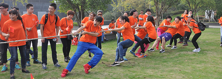 这天,阳光明媚,草坪被挤得水泄不通。公司的运动员们个个跃跃欲试,信心十足,我们先是摆好了姿势,成“工”字步式,用脚顶着脚,勾住脚:身子往后倾,双手像铁钳似的,用手抓住大绳。比赛开始,王博裁判员一声令下,参赛队员们手拉着手,脚顶着脚,使出浑身力气,奋力地拔着。绳子中的红布条一会向左,一会向右,好像两只鸭子抢吃一只蚯蚓似的。比赛异常焦灼,最终市场部获得了本次比赛的胜利,果然姜还是老的辣,胜利的欢呼声响彻了草坪的上空。