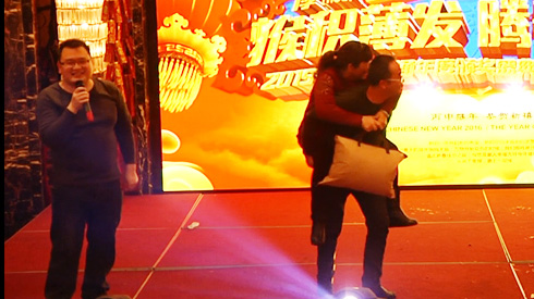 乔总抽中朱老板,热情拥抱