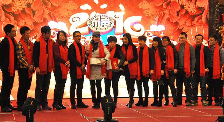 每年的晚宴抽奖都是大家长尹总变相的给员工发放福利的一种方式,当然也是我们最最期待的环节啦,因为不光有丰厚的礼品还有现金奖哦!一轮又一轮的抽奖,大家的呐喊声,欢呼声,为小伙伴得到奖时的喝彩声,那样的一片沸腾久久不能平息!与其说是某个人中奖,不如说是一份份好运的相互传递,把这份幸运和荣耀一直一直传下去......