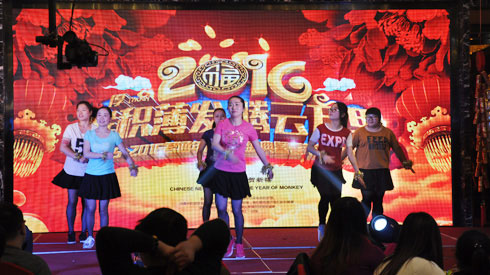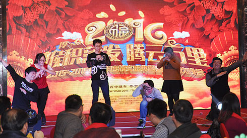 接下来我们技术部门的帅哥美女们闪亮登场,带来小品<我的路>顾健美给我印象最深刻,一改往日形象,妖娆的甩头舞,可是用尽浑身力气,获得阵阵掌声,赢得我们君通春晚的最佳女演员的称号。