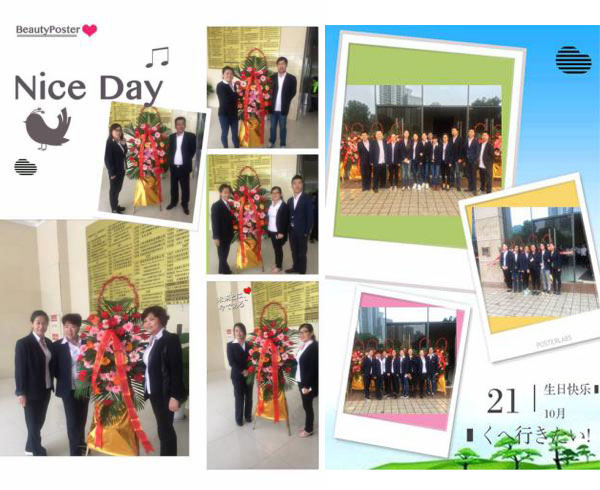 一早鞭炮花篮以及我们庞大的君通队伍在办公楼下形成了一道最亮丽的风景线,无疑我们成了吸睛的焦点。路人带着羡慕当然也是疑惑的眼神看着我们,好吧,我就大方的告诉你:今天是我们君通16周岁的生日啦!此刻生日庆典也开始啦!