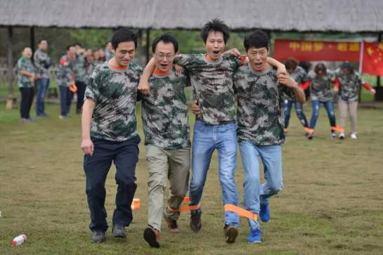 考验配合的四人六足绑腿跑,大家争先恐后,你看他们几个好默契啊,跑起来跟一个人似的。再看那边的几个,终点前跌了一跤,可惜,再看地上的几个小伙伴,却笑的好开心,好吧!再给一次机会,这次要加油啊!