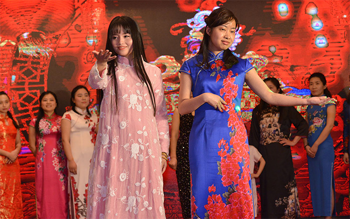 下午,则是君通的春节联欢晚会,即为我们自己的小春晚,而且,我有有幸参加了,可以说,贡献了自己的一份力量。虽然,由于要进行分后台准备等工作,不能完整观看所有节目,但总体来讲,还是办的非常成功的,可谓是精彩纷呈,既有激情四射,又有活泼可爱,还有娓娓道来,就像一桌满汉全席,各种滋味都有,值得大家慢慢品尝和回味,难以忘怀啊!并且,今年对于我自己,也是一个重大突破,首次穿旗袍,尝试不同风格,发现另一个自我。而且,其结果,还是不错的。
