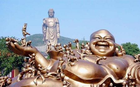 灵山胜境座落于山青水秀、风物宜人的无锡太湖国家旅游度假区,距无锡市区17公里,占地面积约30公顷,是颇具特色的佛教文化主题园区。灵山胜境于九七年四月初开始对外开放,据说于当年十月举行了隆重的灵山大佛开光仪式,邀请了国内外千作高僧会聚灵山,法音梵唱,盛况空前。宏伟庄严的灵山大佛座落于无锡太湖之滨,因其所在地形似西天佛祖福地灵鹫山而得名小灵山。