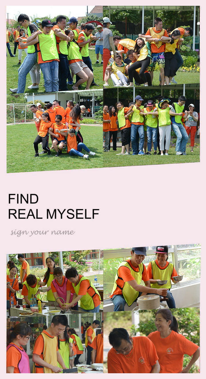 大家开始报数分组,然后每队穿上自己一队的队服,开始了第一个游戏5毛一元,(男生代表一元,女生代表5毛)当然我们的小朋友们在这个环节可抢手了,教练一声令下,大家开始围着圈圈随着音乐小跑起来,大家都竖起自己的耳朵认真听着教练嘴巴会喊出什么数字来然后进行组合,如果有单出来的,那么就要惩罚了,所以大家都特别用心的听着,不过还是会有人收到惩罚,比如唱歌做俯卧撑,但是大家都很开心,玩的都忘乎自我了,接下来的游戏是看大家是协助能力,每组的人都背对着背,胳膊互相挎着彼此的胳膊,然后坐在地下,看着哪组的人可以先站起来,其实这个游戏的关键就是看大家的互相配合,如果有一个人没有使好力气就会导致这一组的人都站不起来,所以大家在准备的时候都互相揣摩怎么样使劲,看着大家的努力及认真的样子,就知道大家肯定都没有问题都可以站起来的,虽然这两个活动我都没有参加,但是在一边看着的我心里特别激动紧张,看着大家玩的那么开心情不自禁的拿着手机捕捉大家的精彩瞬间.紧接着我们去了另一个地方钓龙虾,大家纷纷拿着小鱼杆栓上诱饵开始钓龙虾,第一次参加这样的集体钓龙虾还是蛮开心的,虽然没有钓到,但是看见别的同事有收获一样的很开心!