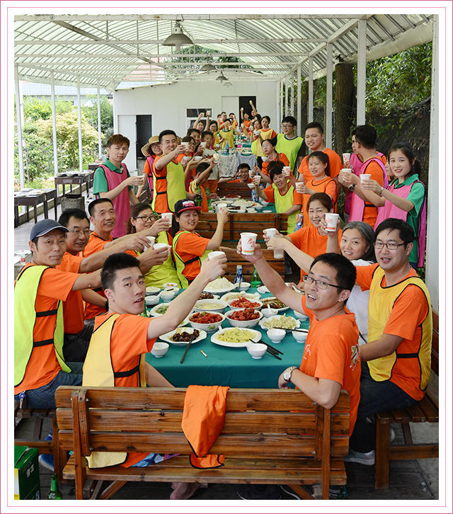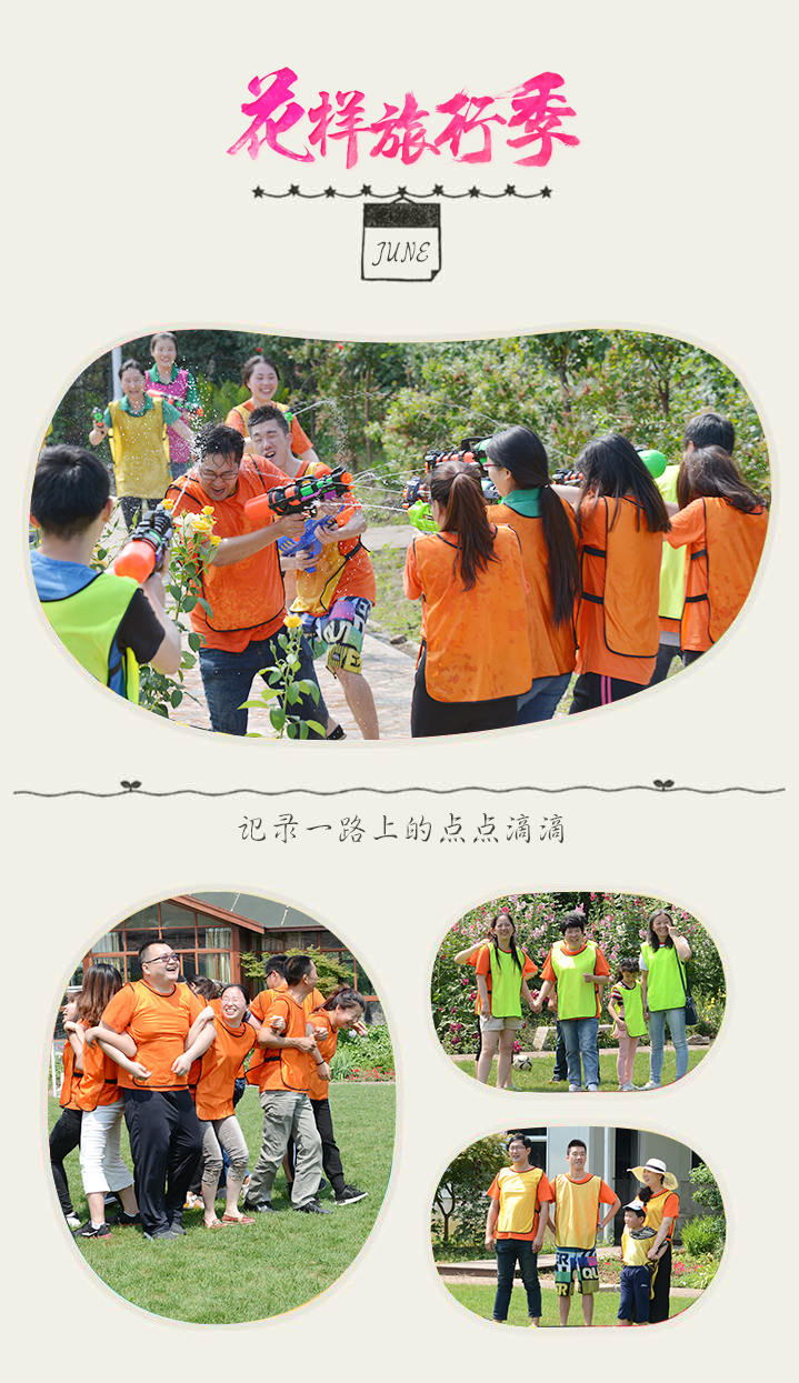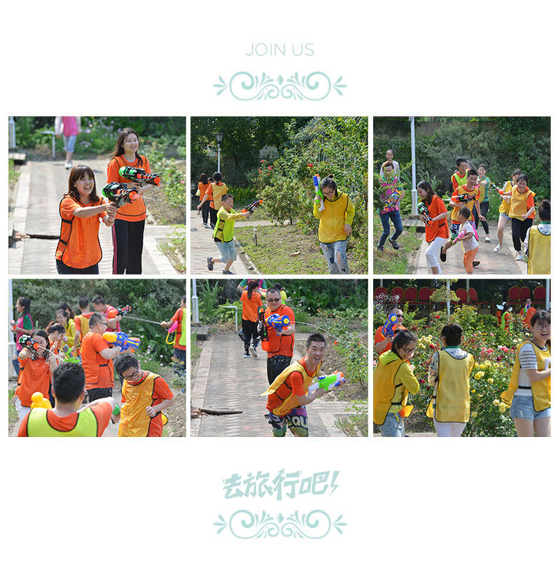 吃好午饭大家各自歇息一下,然后进入了我们下午的活动,第一个游戏就是水枪大战,大家各自领好自己的装备,开始去装水,然后两队先躲起来,剩下两队就是进攻的,激烈的战斗开始了,虽然衣服都湿透了但是大家还是不放弃还是攻打对方,看着我们的胖阿杜和胖蒲斌就很搞笑,大家都围着他两攻击,全程大家玩的都很嗨,因为天气热的原因,正好就这么个水枪大战大家都积极参加根本就不在乎自己的衣服湿掉什么的,就连我们的小朋友们都不甘示弱,跟着部队跑见人就攻击,大家都玩的忘乎自我了,当然也有我们的摄影师给我们留下最美最嗨的瞬间,这个环节结束后大家开始了另一个游戏大脚板,两队两队pk把每组队员的两只脚各自绑在两个大板上,然后一二一二的一起往前走,开始的时候大家配合的都不是很好导致前行不了,后来领队的人告知大家按照一个节拍来,开始先左后右,这样的话就不会乱掉,全部按照领队的节拍来就可以,大家又再试了一次,都喊着一个节拍一起往前走,这次真的就做到了,没有中途停下来而且一口气走到终点,大家都好厉害,做到了真正的齐心协力,趁着大家开心的劲头开始了另一个游戏抢板凳,这个很好玩,因为输了的人要去抽签,看自己抽到的会是什么题目,然后按照自己抽到的结果去做惩罚,虽然说很吃力,但是大家还是很积极的参加即使知道自己会被罚,看吧,第一个被罚的人就是技术部的蒋瑜娟,所以剩下的人会更加小心几乎都不敢移步了盯着板凳不敢走生怕没坐到被罚,虽然最后胜出的只有一个,但是大家还是很开心,因为重在参与,只为过程中的开心,享受集体活动的快乐,一天的游戏就全部结束了,大家开始收拾东西准备去我们最后一个基地————采摘!