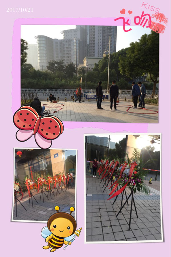 早晨七点钟开始,美丽芬芳的花篮就粉墨登场啦。除了君通人的自发敬献的花篮外,还收到了很多兄弟单位以及老朋友的祝贺,虽身在异地,但被这份情谊打动,心里暖暖的自豪感:原来有好多人都记得咱们君通十七岁的生日呢!鞭炮代表着吉祥喜庆,康总带领着帅男组引燃鞭炮,此起彼伏的鞭炮声为生日谱写着快乐的篇章,为寂静的早晨送来了第一响。
