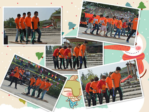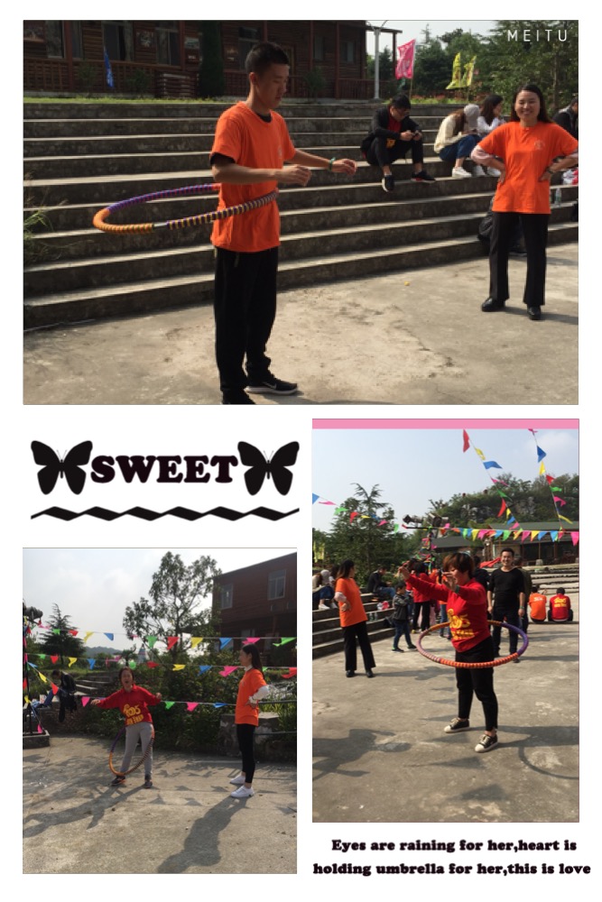 精彩依然继续,拓展还在进行。大脚板也是之前没有尝试过的,起先由康总和尹总带队上来pk,经过短暂的演练和磨合后开始第一轮比赛。找到统一的节奏感和发力点后两支队伍逐渐默契,游刃有余的进行着,最终由康总带领的猛男组险胜,赢得冠军。这边的大脚板如火如荼的进行着,那边的呼啦圈也不甘落后,大家玩的乐此不彼!