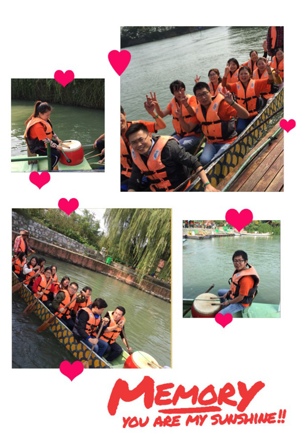 团餐过后迎来下午的活动,最让我期待的赛龙舟终于来啦!由浦团分组指导,分别以康总,邓总,吴青,高鹲为鼓手的四支队伍诞生了,每组11人。说起赛龙舟,就想着锣鼓震天,百舸争流的场景,所以我的心潮早已翻腾起来。只见水面上两排龙舟蓄势待发,高鹲吴青组齐上阵,康总邓总组压轴,赛手们精神抖擞,卯足了劲,在浦团的口哨声中开始了比赛。鼓手们边敲鼓边激励士气,赛手们奋力冲刺,争分托秒,岸上的伙伴们也在欣喜若狂地喝彩着。为赛手们的勇气与拼劲鼓掌加油。比赛先后已经不重要了,重要的是每一个拼搏着的君通人都是我心中的英雄。无论做什么事,拿出赛龙舟的姿态,不畏艰难,勇往直前,胜利就是在岸边等着你!