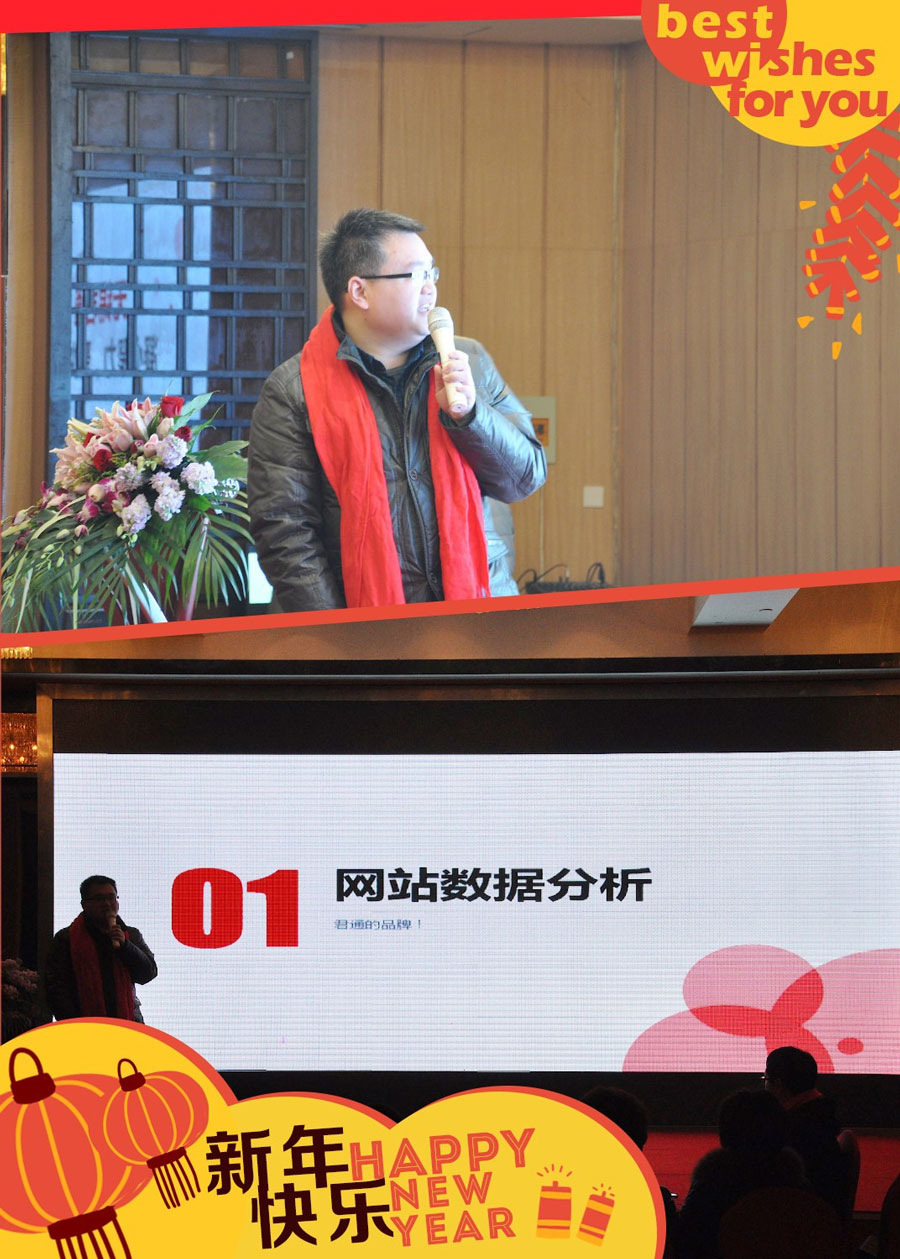 本次年会中技术部门的杜总和设计总监顾金余围绕网站、优化以及设计的数据做了详细解说。杜总表示从各种数据的剖析和展示,过去的一年内技术部门对努力提高产品技术质量付出了很多的努力,同时也指出工作中存在的很多问题和未来的管理方向。设计总监顾金余也就网站设计未来的国际发展趋势做了震撼视觉的分享,他提出:我们不仅要了解自己,也要了解行业,市场与技术瞬息万变,我们自身也要与时俱进。