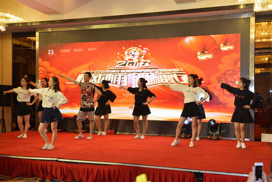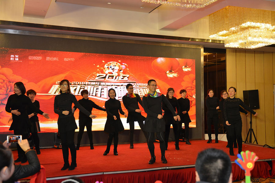 由康总带领的客服和行政部带来的重量级阵容舞蹈——《嗨翻2018》一度点燃了全场的气氛,赢得了在场观众雷鸣般的掌声。姑娘们在动感十足的韵律中登上舞台,整齐划一、充满活力的舞姿,康总富有感染力的表现,成为晚会的亮点之一。