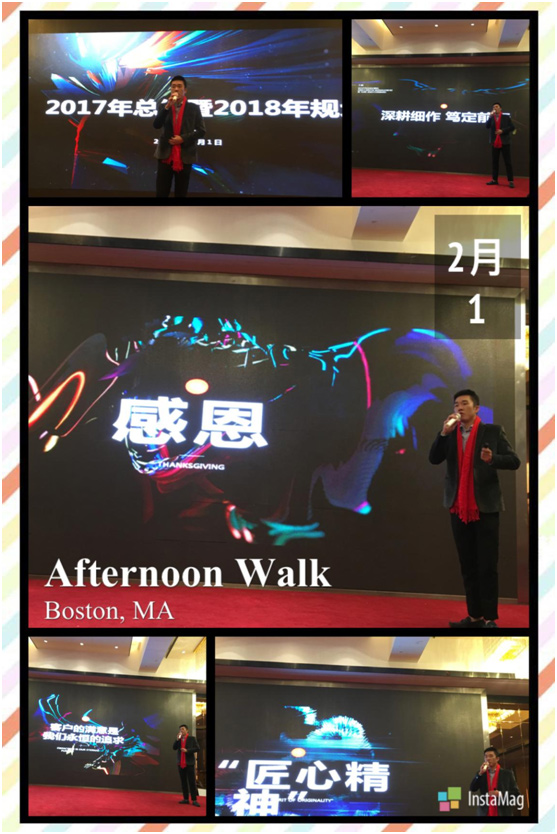 通过康总对2017年各部门情况的回顾与总结,并且在工作报告中非常细致得分解了18年的目标,给大家指明了前进的方向!尤其是康总为我们精心准备的“何必低调、你应该骄傲”的视频非常燃,深深鼓舞了一直低调前行的我们,通过努力获得的成功就该为自己骄傲,为自己加油助威喝彩,不断突破自我,我们满怀豪情,无惧年龄,无惧人生!公司2018年目标已确定——2500万,君通也将踏上新的征程,在康总的带领下深耕细作铸辉煌、笃定前行创品牌!