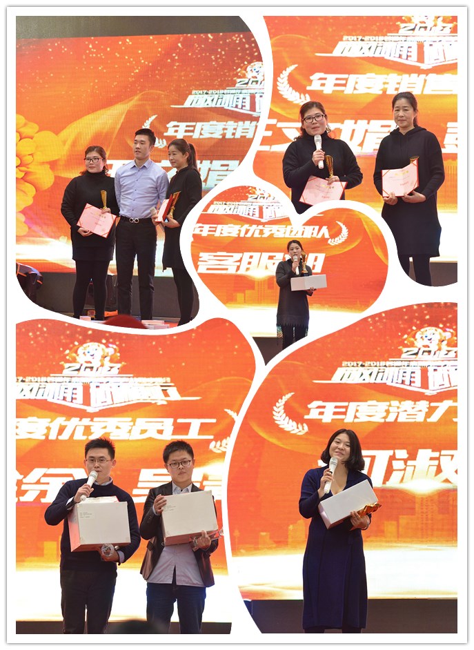 技术部杜总、客服部刘苏、设计顾工、行政顾雪萍、人事何淑琴、市场大区经理赵经理、张经理、宋经理、电销高经理齐经理等纷纷上台就各职责部门2017年度的工作做总结报告与2018年工作的展望,每个部门职责人的2017年的深刻总结与精彩展望让大家对2018年都充满期待、更让大家看到了每个团队的增值空间: