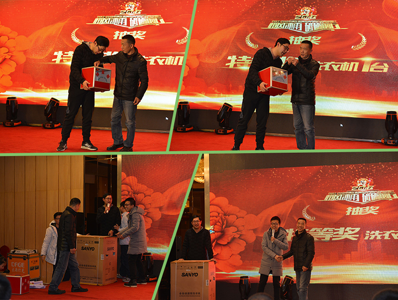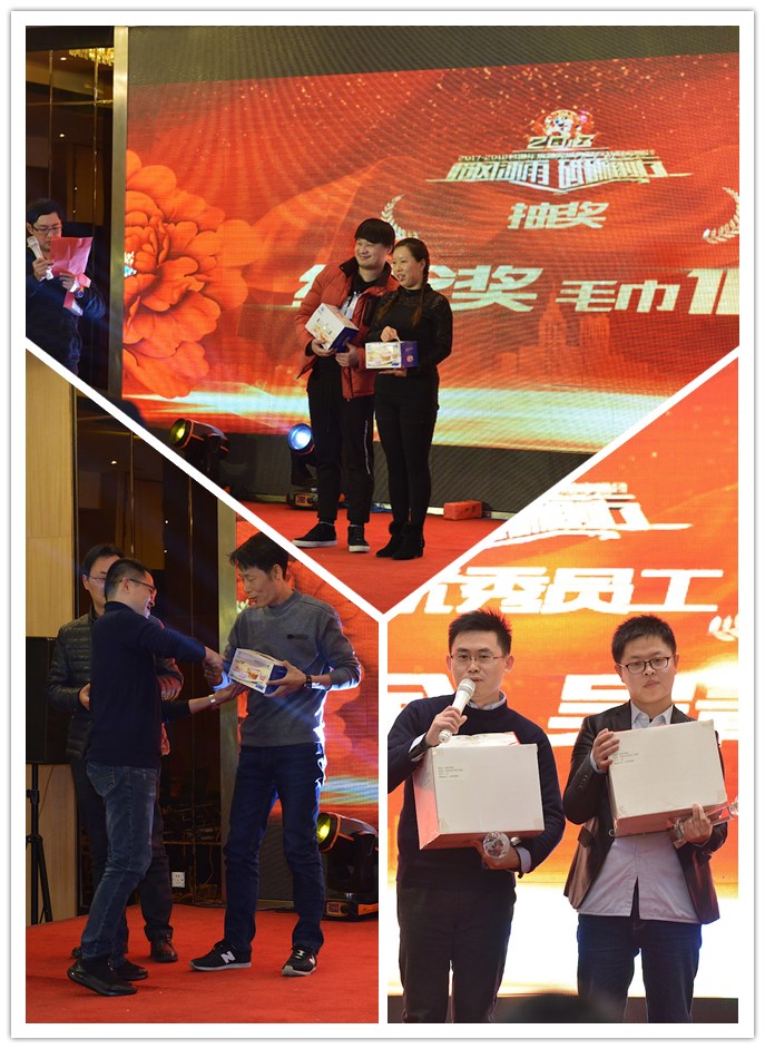 康总为大家掷重金准备的洗衣机、四件套、足浴盆、蒸锅套装、现金大奖等引得全场尖叫不断、大家都期待好运能降临到各自身上——我们全体客服小花们都中奖啦,我儿子也中奖啦、我抽奖抽到了娃他爸、这缘分天注定,衷心感谢Boss康Boss尹给我们带来的好运和好机会,奋战2018,我们一起笃定前行!欢乐的时光总是短暂的,轰轰烈烈的2017年度君通年会在欢声笑语中圆满结束,但美好的欢乐的心情仍还在延续……带上这份感动、激情和好运投入全新的2018年度工作中,踏上新征程,迎接新挑战,在康总尹总的带领下坚定不移地朝着既定的目标前进前进向前进!更祝愿君通狗年旺旺、蒸蒸日上!!