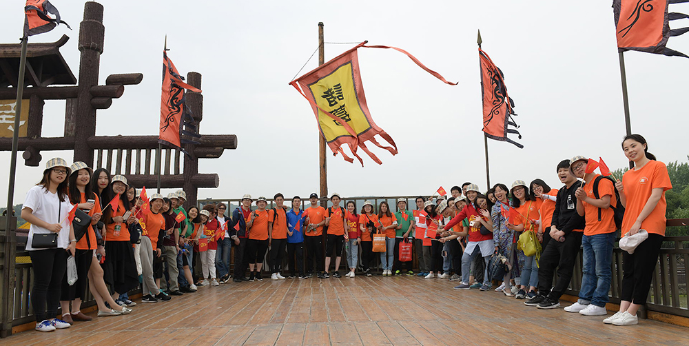随着春姑娘的脚步越来越远,初夏粉墨登场的时候,君通上半年度旅游拉开了帷幕。天公作美,一改几天前燥热,5月19号,天气忽变凉爽起来,貌似专门为我们君通人出游定制的好天气。大巴车上,大家热情高涨,兴高采烈,在导游专业的讲解中,很快到达了此次游玩的目的地---三国水浒城。