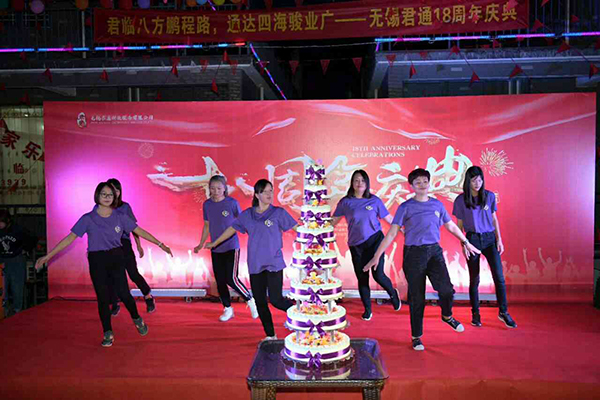 活动后大家都回到了旅馆换上了自己最帅气最漂亮的衣服来到签名墙签名留影,签好名后迎来了今晚的重头戏——君通十八周年晚会晚宴。