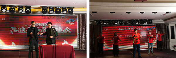 技术部的同事们全员出动先后给大家送上小品《同学聚会》、《开年会》和《安检》,轻松幽默的表演令人忍俊不禁。而大咖云集的豪华创作阵容小品《B超风云》把晚会推向了一个的高潮,现场欢呼不断,掌声不断。