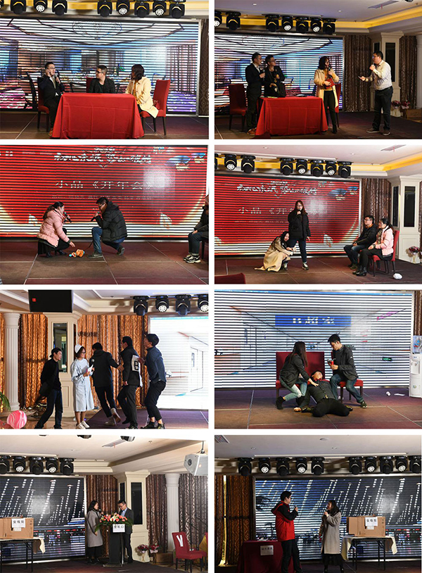 接下来各个部门主管依次进行了各自的年度总结报告。首先是技术部的杜总,从技术方面展现了我们公司的硬实力;设计顾工向我们介绍了网站未来的发展方向;客服部主管刘苏干练亮相,强调提升服务增强公司的软实力;行政人事部何淑琴则着重指出要吸引更多的人才,指定培训计划,完善公司管理制度是明年的重点工作计划。市场大区经理赵经理、张经理,电销部叶经理,齐经理也纷纷上台制度了明年的目标。最后我们的大家长尹总也做了精彩的发言,希望大家一起齐心协力,携手奋进,创造新的辉煌!