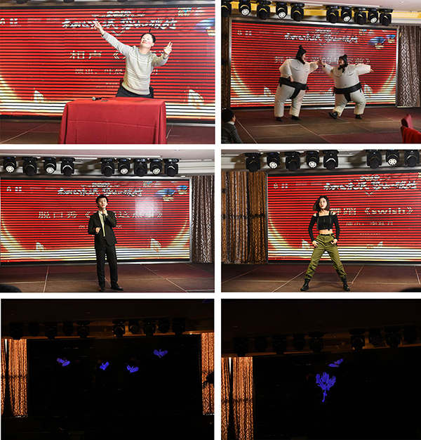 每年小朋友的节目也是特别让人期待的,各个都是多才多艺的。高畅言小朋友为我们带来笛子独奏《鄂尔多斯的春天》,小帅哥顾瀚中给我们带来尤克里里《致爱丽丝》和《沧海一声笑》,市场部刘红和两个女儿给我们带我欢快的舞蹈《新年快乐》!