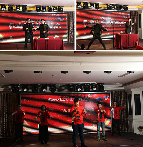 中午经过了短暂的休息后迎来了让人期待的君通一年一度的春节联欢晚会。对于我来说今年的晚会跟往年有所不同,不在以一个观众的角度欣赏表演。而是最为主持之一和节目表演者参与进来。君通的小伙伴们多才多艺,各个身怀绝技,为大家准备了一场视听盛宴!本届晚会尹总还隆重邀请知名头条专栏作家:太湖梅子老师,康总邀请杭州思亿欧江苏区域渠道经理俞总,以及我们尹总的同学和君通的家人们。大家翘首以望,让我们一起领略君通家人们的精彩瞬间吧: