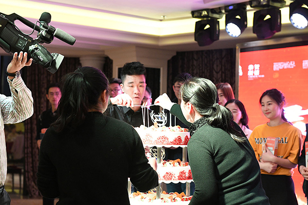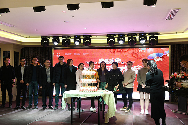 欣赏完了精彩的节目,年度饕餮盛宴即将开始!今年的年夜饭还有一个特别的环节--尹总和康总特别为我们12月和1月过生日的小伙伴们过了一个温馨而特别的生日,大家一起唱生日歌和切蛋糕!也收到了康总精心准备的生日贺卡和生日礼物,特别开心!