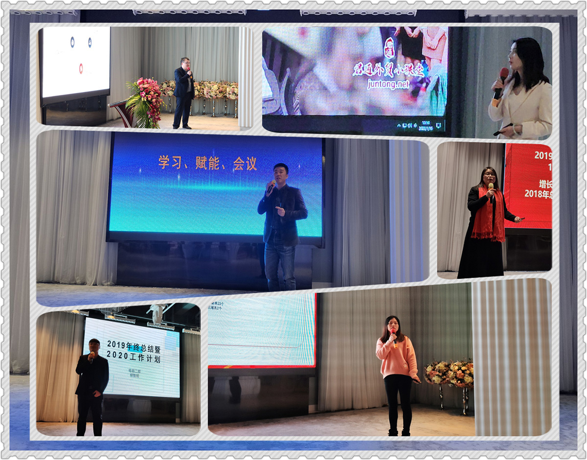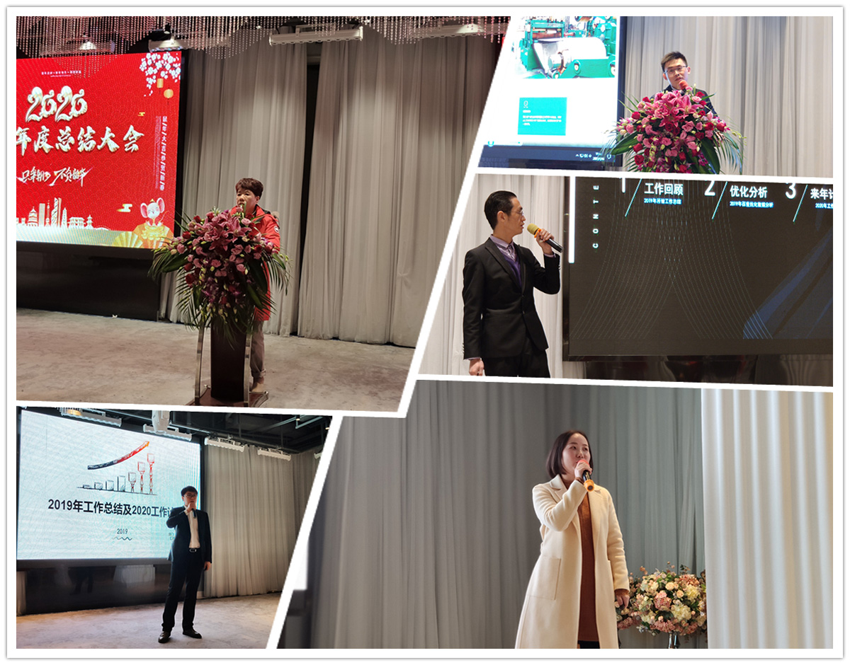 9:30,会议准时拉开序幕。首先,进行的是各部门的年终报告。康总率先出场,总结了公司全年的业绩情况,以及各部门总的工作概况,并对来年公司的发展做出展望。随后,杜可杰代表技术部,刘苏代表客服部,赵冬琴,张洁分别代表市场部,叶晨,柳智明分别代表电营部门,彭郁代表优化,顾金余代表设计,顾雪萍代表人事,分别进行了总结和展望。然后尹总也进行了2019年的总结和2020年的展望,为大家铺开了2020年“只争朝夕,不负韶华”的蓝图。