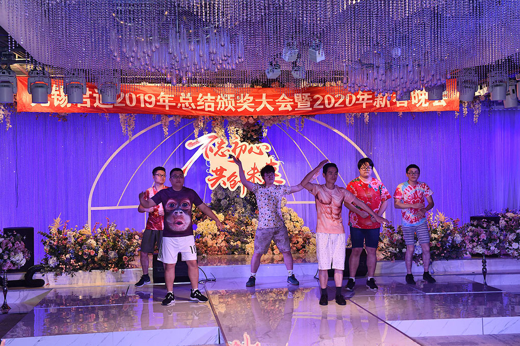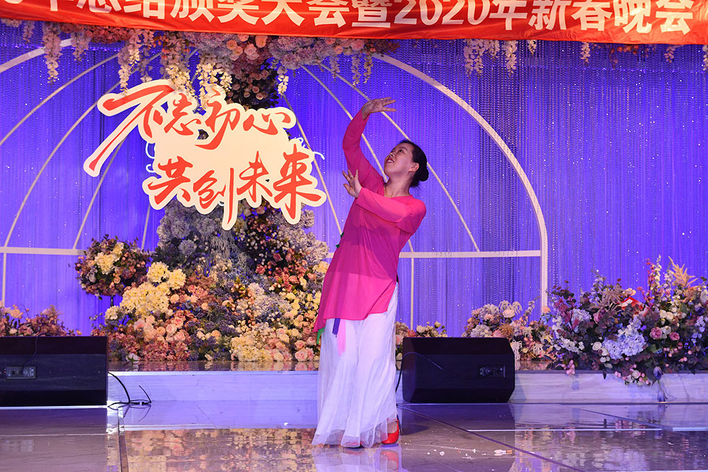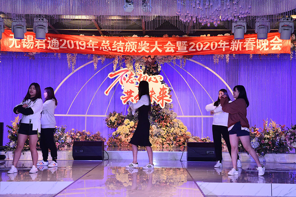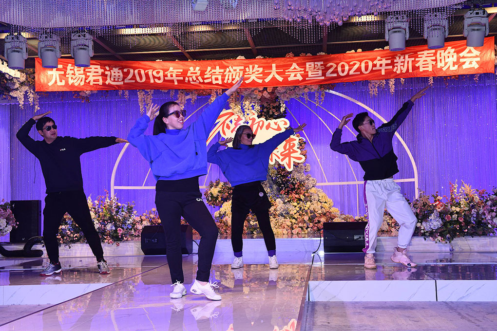 由行政部+商务部小姐姐孙悦 杨小雪 谈海燕 李丽带来的《High跳2020》让我们全场又嗨了一把.小姐姐们的表现很精彩!