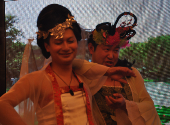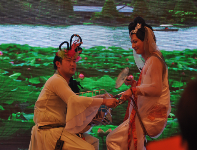在我们焦灼的期待中他们来了---《白娘子传奇》,超哥、浦斌继续走反串路线,他们居然饰演白娘子和小青,令全场一阵欢呼,惊叹,我和我的小伙伴们都惊呆了,超哥你那身材,你那走姿,令多少男性女性羡慕嫉妒恨啊,我们都在怀疑你是否是在本色出演呢?今天的白娘子多了几份妩媚,君通唯有超哥能将其演艺的淋漓尽致。