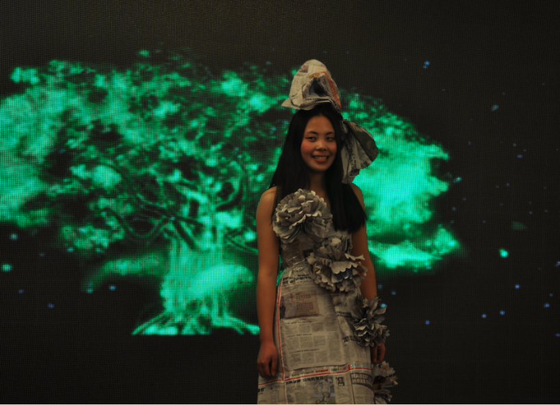 下面登台的可是今晚最佳创意风尚奖是由行政部、软件部带来的服装show《花的衣裳》,仔细看看、我们的show很节能环保哦。。。。。。
