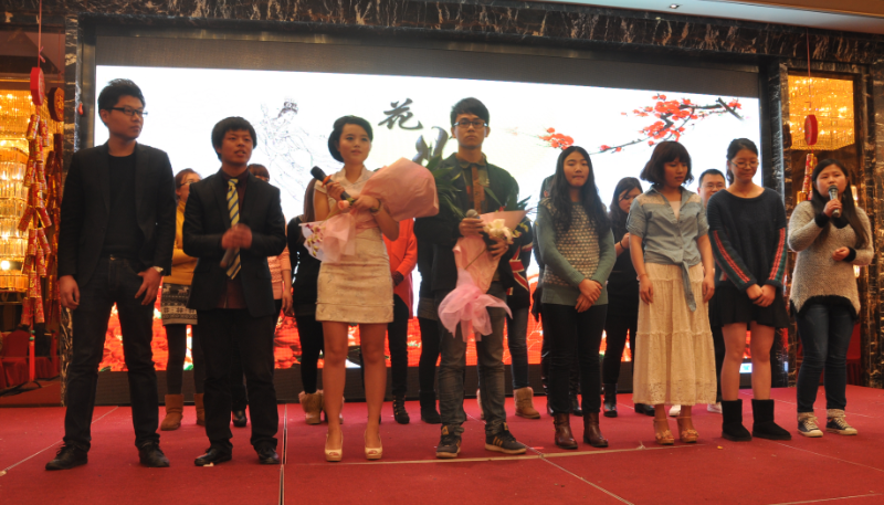 然后是本届会议的岁末压轴大戏——《君通春节联欢晚会》,伴随着4位着装靓丽的春晚主持人的脚步跟各位来宾的尖叫声,我们迎来了君通本届“视觉盛宴”的开幕,首先是我们可敬可爱的尹总为大家致春晚开幕词,尹总激情的一席话语让在座的每一位都按捺不住心中的火花,尽情展现自我的时刻到了!
